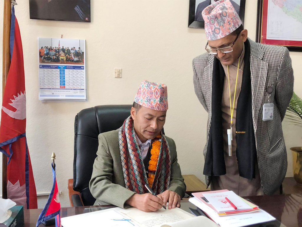 जिम्मेवारी सम्हाल्दै नवनियुक्त खेलकुद मन्त्री लामा ।