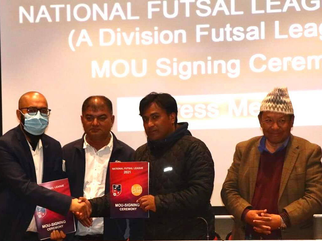 काठमाडौं- पोखरामा आयोजना हुने ‘ए’ डिभिजिन फुटसल लिगका लागि अखिल नेपाल फुटबल संघ (एन्फा) ले आइतबार टर्नपाईक इभेन्ट प्रालिसँग सम्झौता गरेको छ ।
