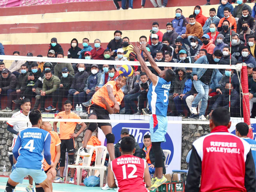 पहिलो खेलमा नेपाल पुसिल क्लबसँग पराजित गण्डकीले दोस्रो खेलमा त्रिुभवन आर्मीलाई ३–१ सेटले पराजित गरेको थियो । पुलिस शसस्त्र प्रहरी बलसँग पराजित भएको थियो । शसस्त्र प्रहरी बल नेपाल आर्मीसँग पराजित हुन पुगेको थियो । फाईनलमा गण्डकी प्रदेशले अब नेपाल पुलिस क्लब र त्रिभुवन आर्मी क्लब बीचको विजेतासँग खेल्ने छ ।