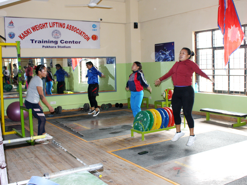 राजविराजमा हुने भारोत्तोलनको लागि खेलाडी प्रशिक्षणमा व्यस्त