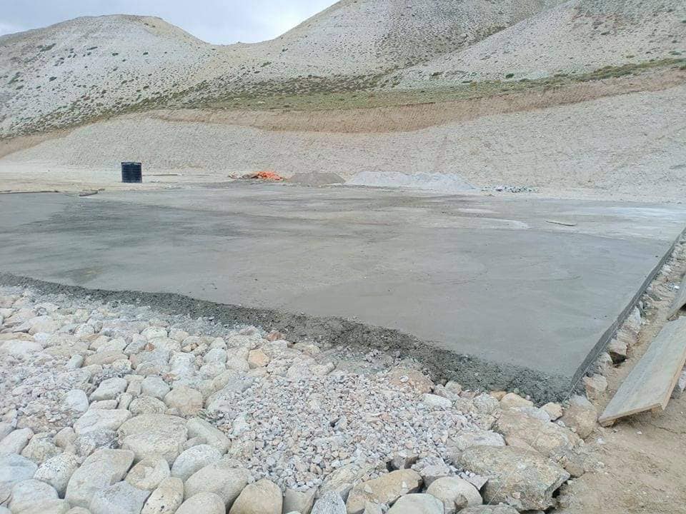 मुस्ताङको लोमान्थाङ गाँउपालिकामा निर्माणाधिन खेलग्राममा बन्दै गरेको बास्केटबल कोर्ट ।