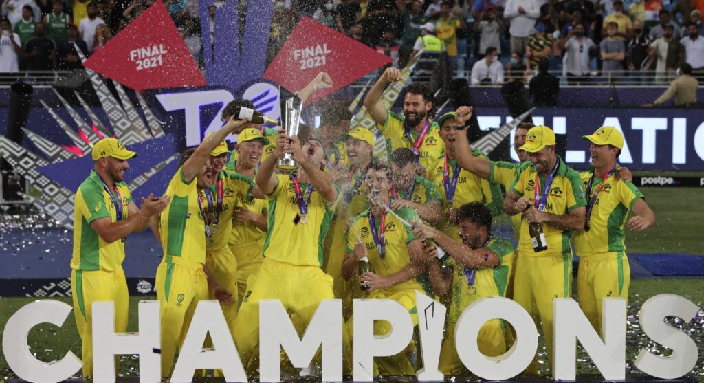 काठमाडौं । अष्ट्रेलियाले आइसिसी टी-ट्वान्टी विश्वकप क्रिकेट २०२१ को उपाधि जितेको छ । आइतबार राति भएको खेलमा न्युजिल्यान्डलाई ८ विकेटले स्तब्ध पार्दै अष्ट्रेलियाले पहिलोपटक टी-ट्वान्टी विश्वकप क्रिकेटको उपाधि चुमेको हो ।