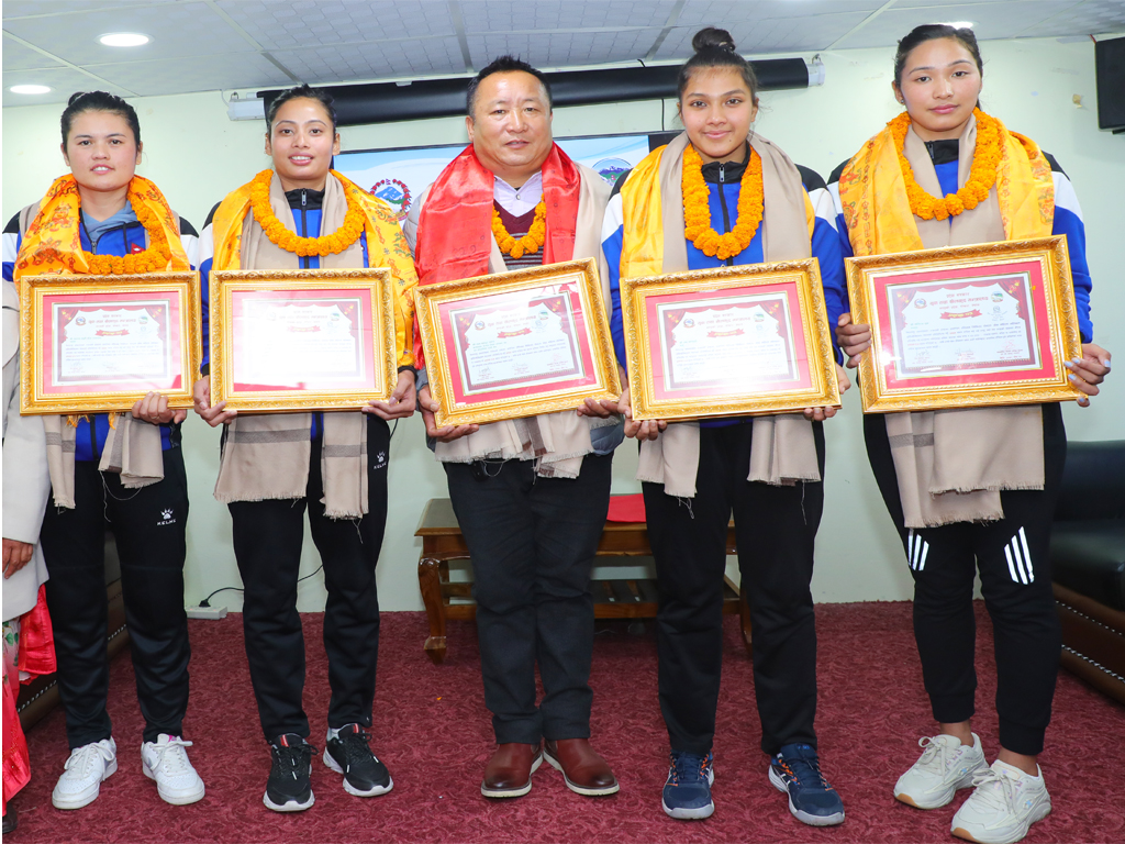 युवा तथा खेलकुद मन्त्री राजीव गुरुङ, मन्त्रालयका निमित्त सचिव तेजप्रसाद काफ्ले, प्रदेश खेलकुद परिषदका उपाध्यक्ष ध्वजकुमार गुरुङ तथा खेलकुद परिषदका सदस्य सचिव तेजबहादुर गुरुङले दोसल्ला ओढाई नगदसहित सम्मान गरेका हुन् । खेलाडीहरुलाई नगद ५०/५० हजार रुपैयाँ प्रदान गरिएको थियो । सम्मानपछि बोल्दै युवा तथा खेलकुद मन्त्री राजीव गुरुङले खेलाडी संरक्षणको लागि मन्त्रालय मार्फत स्वरोजगार कार्यक्रम अघि सारिएको बताए ।