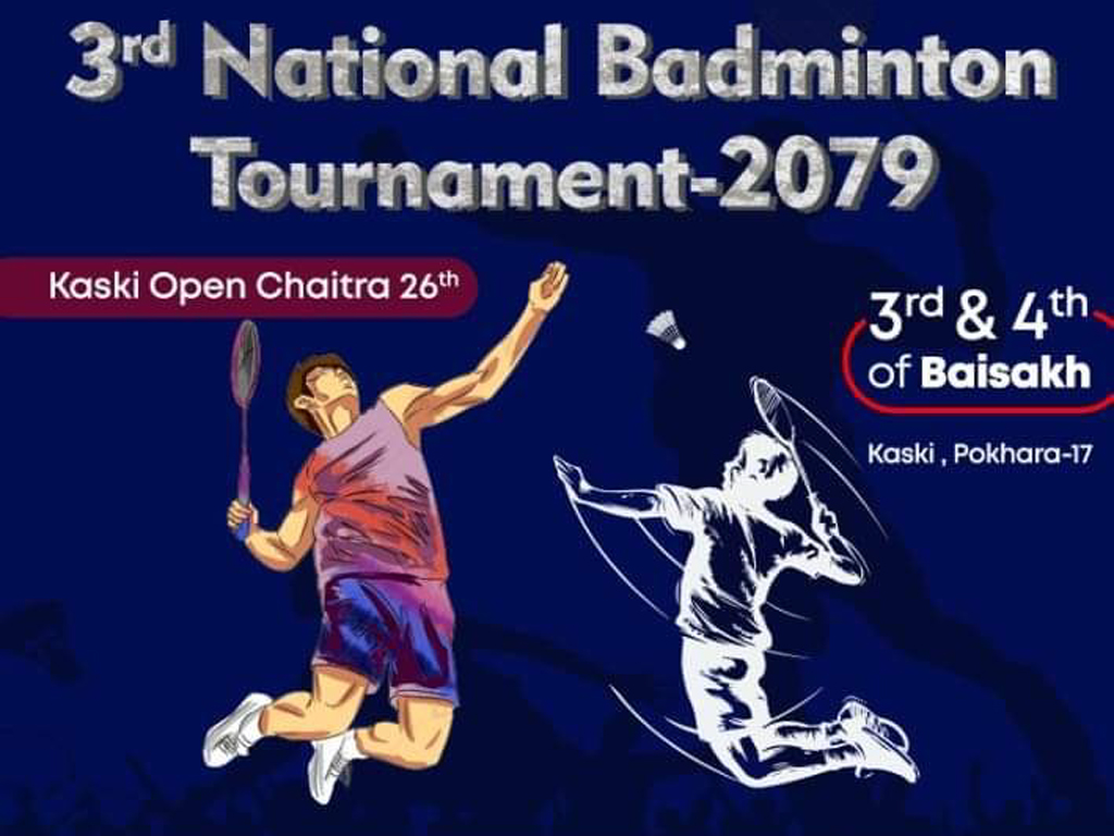 पोखरा-नयाँवर्षको शुरुवातसँगै पोखरामा तेस्रो राष्ट्रिय व्याडमिन्टन प्रतियोगिता शुरु हुदैं छ । पोखरा स्पोर्टस एण्ड व्याडमिन्टन क्लबको आयोजनामा बैशाख ३ र ४ गते पोखरा ७ स्थित सिरमोर व्याडमिन्टन क्लबको कोर्टमा तेस्रो राष्ट्रिय व्याडमिन्टन प्रतियोगिता हुने टिम व्यवस्थापक विशाल बस्नेतले जानकारी दिए ।