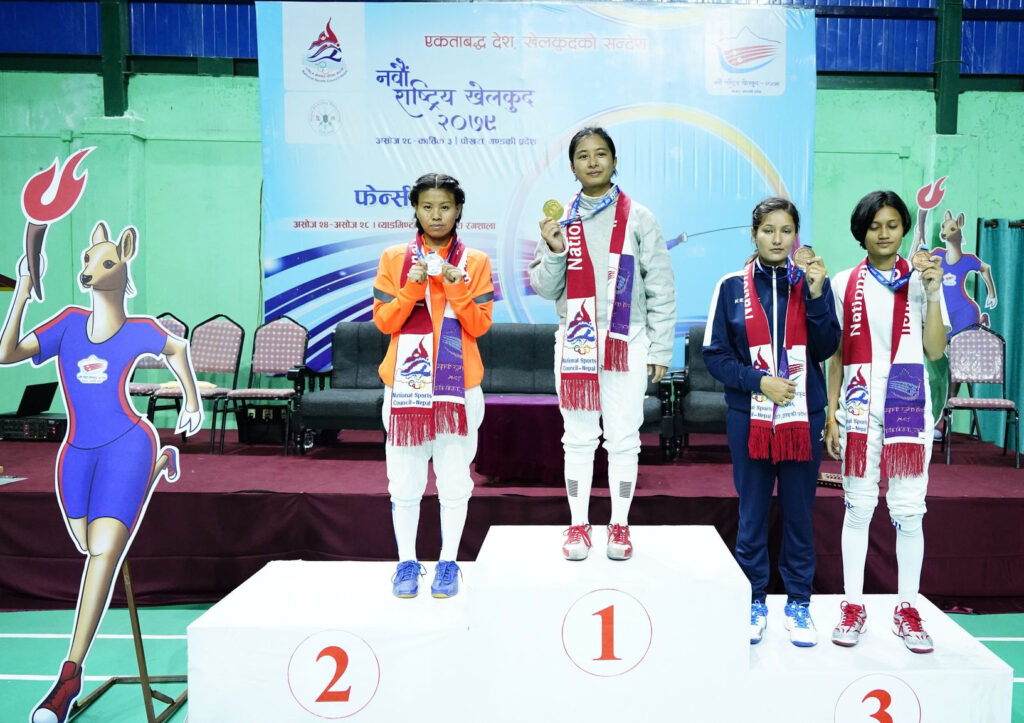 त्यसैगरी फेन्सिङ पुरुष फोयल इभेण्टमा सुदुर पश्चिमका जितेन्द्रबहादुर शाहीले स्वर्ण पदक जितेका छन् । उनी आठौं राष्ट्रिय खेलकुद प्रतियोगिताका समेत स्वर्ण पदक विजेता खेलाडी हुन् । उनले केही महिना अघिमात्रै काठमाडौमा आयोजित बीर गणेशमान स्मृति फेन्सिङ प्रतियोगितामा समेत स्वर्ण पदक जितेका थिए ।