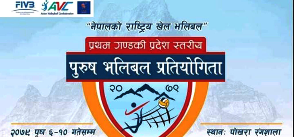 पोखरा-गण्डकी प्रदेश भलिबल संघको आयोजनामा प्रथम गण्डकीस्तरीय पुरुष भलिबल प्रतियोगिता बुधबारदेखि पोखरा रंगशालामा शुरु हुदैं छ । नेपाल भलिबल संघ स्वीकृति तथा गण्डकी प्रदेश खेलकुद परिषदको समन्वयमा आयोजना हुने प्रतिस्पर्धामा गण्डकी प्रदेशका ११वटै जिल्लाको सहभागिता रहने गण्डकी प्रदेश भलिबल संघका महासचिव टहलसिंह थापामगरले जानकारी दिए । कास्की, तनहुँ, स्याङजा,बाग्लुङ, पर्वत, म्याग्दी, लमजुङ, नवलपुर, मनाङ र मुस्ताङ जिल्लाको सहभागिता रहने छ ।