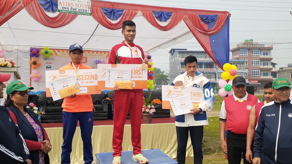 प्रथम संस्करणका विजेता त्रिभुवन आर्मी क्लबका रामजी बस्नेतले १ घण्टा ९ मिनेट २९ सेकेण्डमा दौड सकेर यसपटक तृतीय भएको आयोजक खेलकुद विकास समितिले जनाएको छ । सशस्त्रका खिमबहादुर खत्री १ घण्टा ९ मिनेट ४९ सेकेण्डमा दुरी पूरा गरेर चौँथो र आर्मीका प्रताप खड्का १ घण्टा १० मिनेट ४१ सेकेण्डमा दौड सकेर पाँचौँ भए । तृतीय, चौँथो र पाँचौँले क्रमशः ३० हजार, २० हजार, १० हजार र ५ हजार रुपैयाँको साथमा मेडल र प्रमाणपत्र पुरस्कार पाएको खेलकुद विकास समितिका सदस्य सचिव सुवास खड्काले जानकारी दिए ।