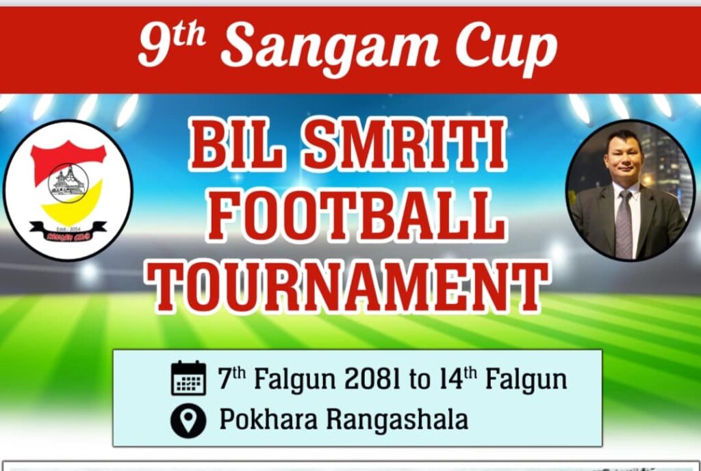 पोखरा-आगामी फागुनको पहिलो साता पोखरा रंगशालामा क्लबस्तरीय संगम कप फुटबल प्रतियोगिताको ९ औं संस्करण आयोजना हुदैं छ । संगम क्लबले आफनो पूर्व राष्ट्रिय खेलाडी विल तामाङको स्मृतिमा संगम कप आयोजना गर्दै आएको छ ।