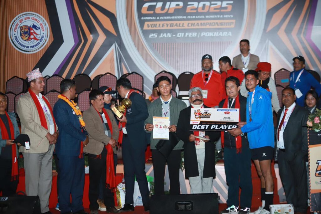 पुरुषतर्फ उत्कृष्ट स्पाइकर गण्डकीका रमनकुमार, सर्भर गण्डकीकै सञ्जुकुमार शाह, सेटर विवश आलेमगर, ब्लकर पुलिसका रविन नगरकोटी, लिबिरो आर्मीका इश्वर थापा र प्रशिक्षक पुलिसकै चन्द्र कुँवर बने ।