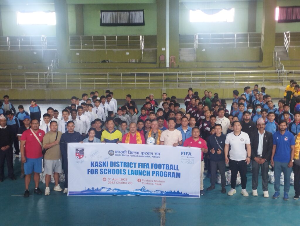 पोखरा-फिफा फुटबल फर स्कुलको लागि कास्की जिल्ला फुटबल संघले कास्कीका विभिन्न १५ विद्यालयलाई फुटबल हस्तान्तरण गरेको छ । फिफाबाट प्राप्त बललाई संघले शुुक्रबार विशेष कार्यक्रम गरी छनोटमा परेका १५ विद्यालयलाई बल हस्तान्तरण गरिएको हो ।